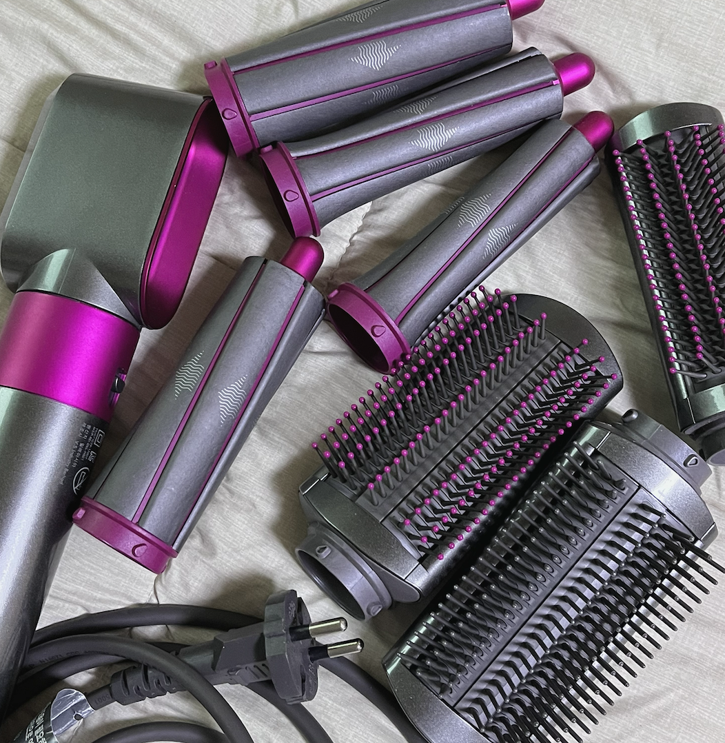 솔직히 구성만 보면 당연히 에어랩 사야지 하실거예요. 슈퍼소닉은 그냥 드라이기인데 에어랩은 빗, 배럴, 가시롤 등 뭔가 구성이 많아보이거든요. 지금 에어랩 집에 가지고 계신 분들은 공감하시겠지만, 저 구성품 중에 쓰는거 몇 개나 되시나요? 저는 드라이기와 가시롤만 주로 쓰고 나머지는 거의 꺼내지도 않습니다...^^ 그러니 구성품 개수만 보고 덜컥 에어랩 사지 마시길.