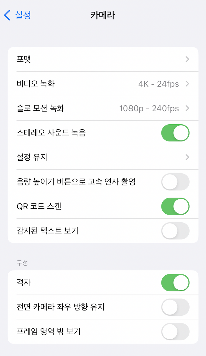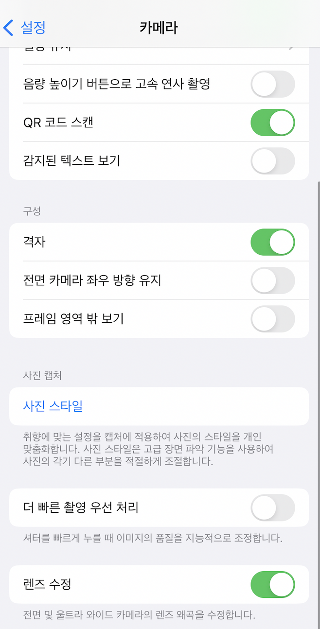 그리고 처음에 13미니를 개봉하고 사진을 찍었는데 사진첩에 들어가서 사진을 보면 무슨 빛에 반사된 것처럼 이상하게 사진이 남겨져 있더라고요. 그래서 제가 이곳 저곳 사이트, 블로그에서 찾아서 맞춘 초기세팅을 보여드립니다. 이렇게 해도 XS처럼 찍히진 않습니다. 그래서 저는 가끔 사진 잘 찍혔을 때는 보정어플로 공을 들여 XS 느낌을 내려고 노력한답니다.