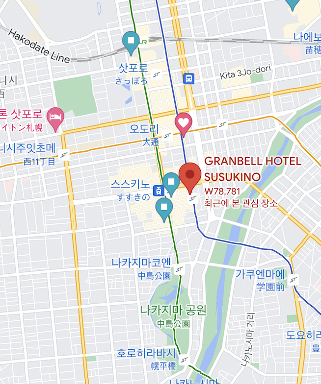 최근에 다녀온 삿포로에 2박 3일 여행에서 <그랑벨 호텔 스스키노>에서 지냈는데 아주 맘에 들어서 후기를 남겨보겠습니다.
