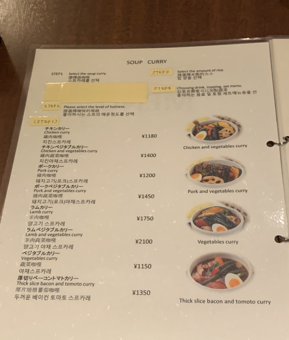 스스키노로 다시 이동해서 스프카레를 먹으러 갔습니다. 삿포로는 스프카레가 유명하니 꼭! 드셔보시길 추천합니다. 얼큰 스프 버전으로 드시면 해장하는 느낌으로 드실 수 있습니다.