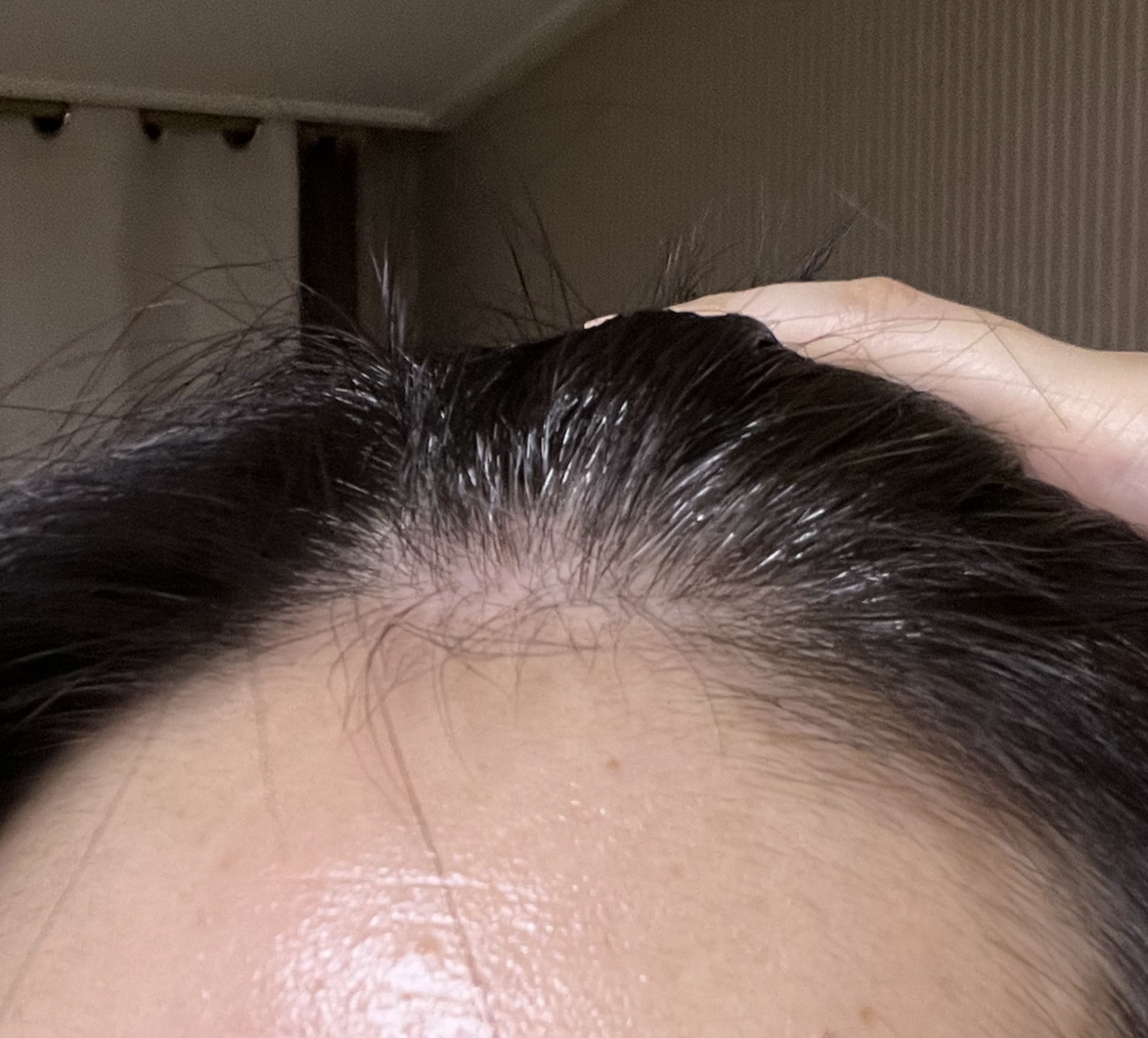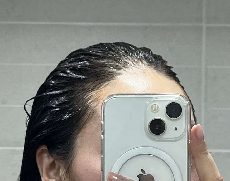 제 새치의 심각도가 사진에는 잘 안담겨서 아쉬운데요,, 최대한 찍어보려고 했는데 잘 안나온 것 같아요. 가르마와 앞머리 옆머리 중심으로 새치가 진-짜 많거든요. 반짝거리는게 다 새치라고 보시면 됩니다.