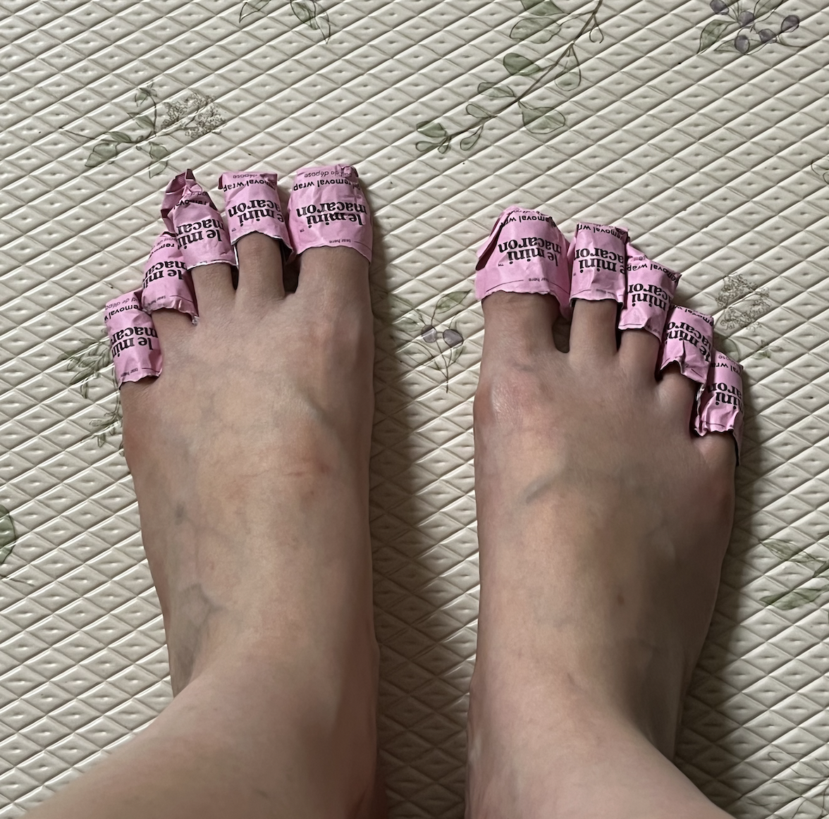 *tip, 리무버패드 뒤에 양면테이프가 있으니 비닐을 떼고 발가락을 감싸주면 공기 안통하게 더 꽉 발가락을 감쌀 수 있습니다.*