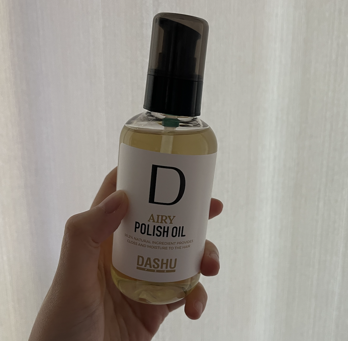 폴리쉬 오일은 모발의 질감을 촉촉한 느낌으로 마무리 시켜주는 오일을 의미합니다. 그래서 태슬컷 같이 모발의 끝을 강조되었으면 하는 스타일에 잘 어울리는 것 같아요. 다슈 폴리쉬 오일의 경우 98.2% 식물 유래 성분이 들어가 있어 건강하게 모발을 케어할 수 있다고 합니다.