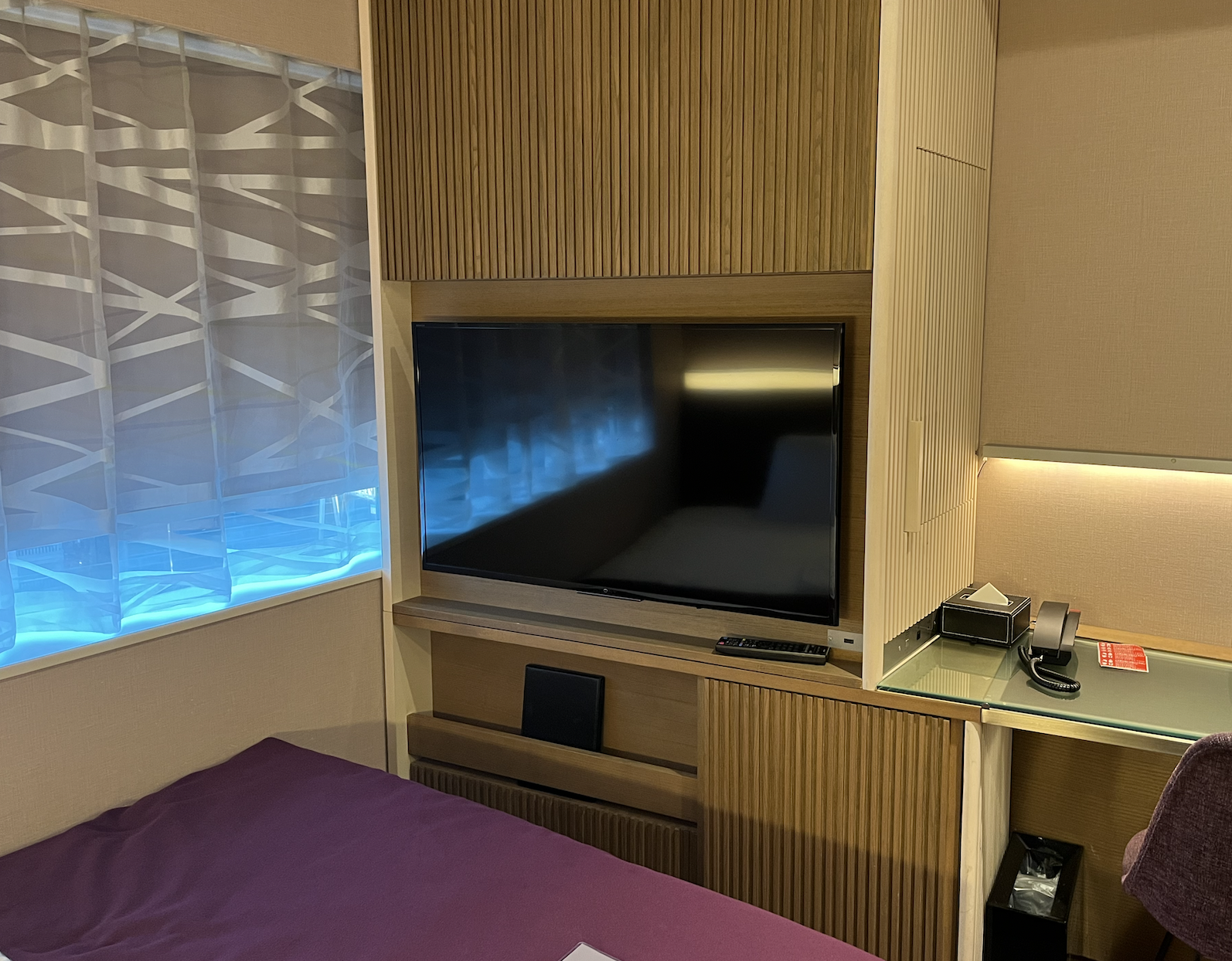 침대 옆에 이렇게 선반 같은 곳도 있어서 밤에 도쿄 타워 보면서 맥주한잔 하기 딱 좋았습니다.