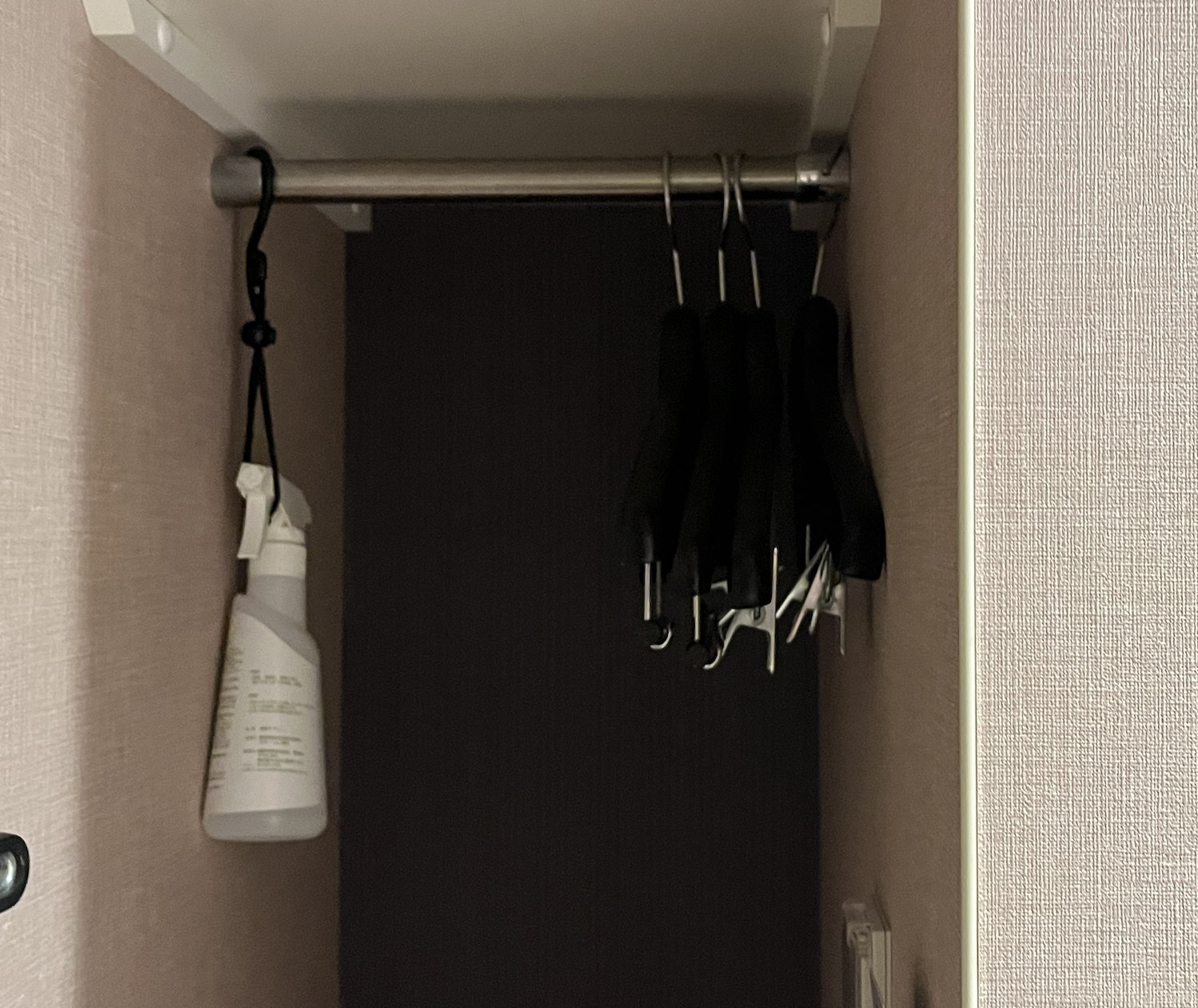아주 작고 좁지만 아래 사진처럼 옷을 걸 수 있는 공간도 있었어요.